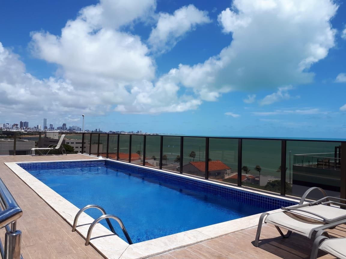 Seafront Flat at Cabo Branco Beach with 24-Hour Reception. Fully equipped structure: rotating parking, gym, sauna, mini-market, laundry facilities, beach items, bicycles, and skateboards (limited quantity). Rooftop with pool and gourmet area with barbecue. Apartment features a queen-size bed and a sofa bed, Smart TV, air conditioning, minibar, microwave, coffee maker, kitchenware, full linen set, and Wi-Fi. Modern, functional, and comfortable bathroom.