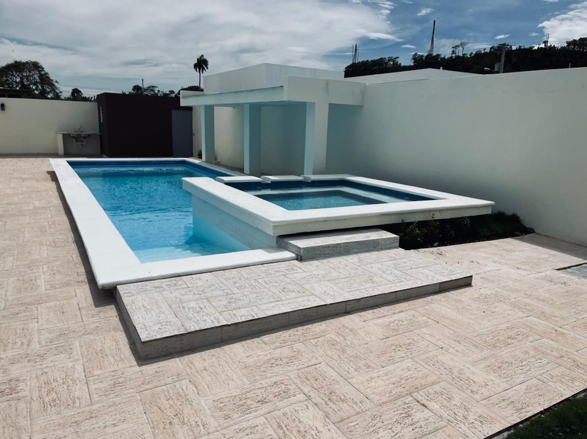 Красива вілла з 5 спальнями та басейном, в 5 хвилинах від пляжу Калетон і водоспаду Ель-Салтадеро та в центрі села Кабрера, недалеко від пірса, ресторанів і парку. В 5 хвилинах від лагуни Дуду та Плайя-Гранде. У всіх номерах є кондиціонери та вентилятори, за винятком чотирьох кімнат, де є лише вентилятор.