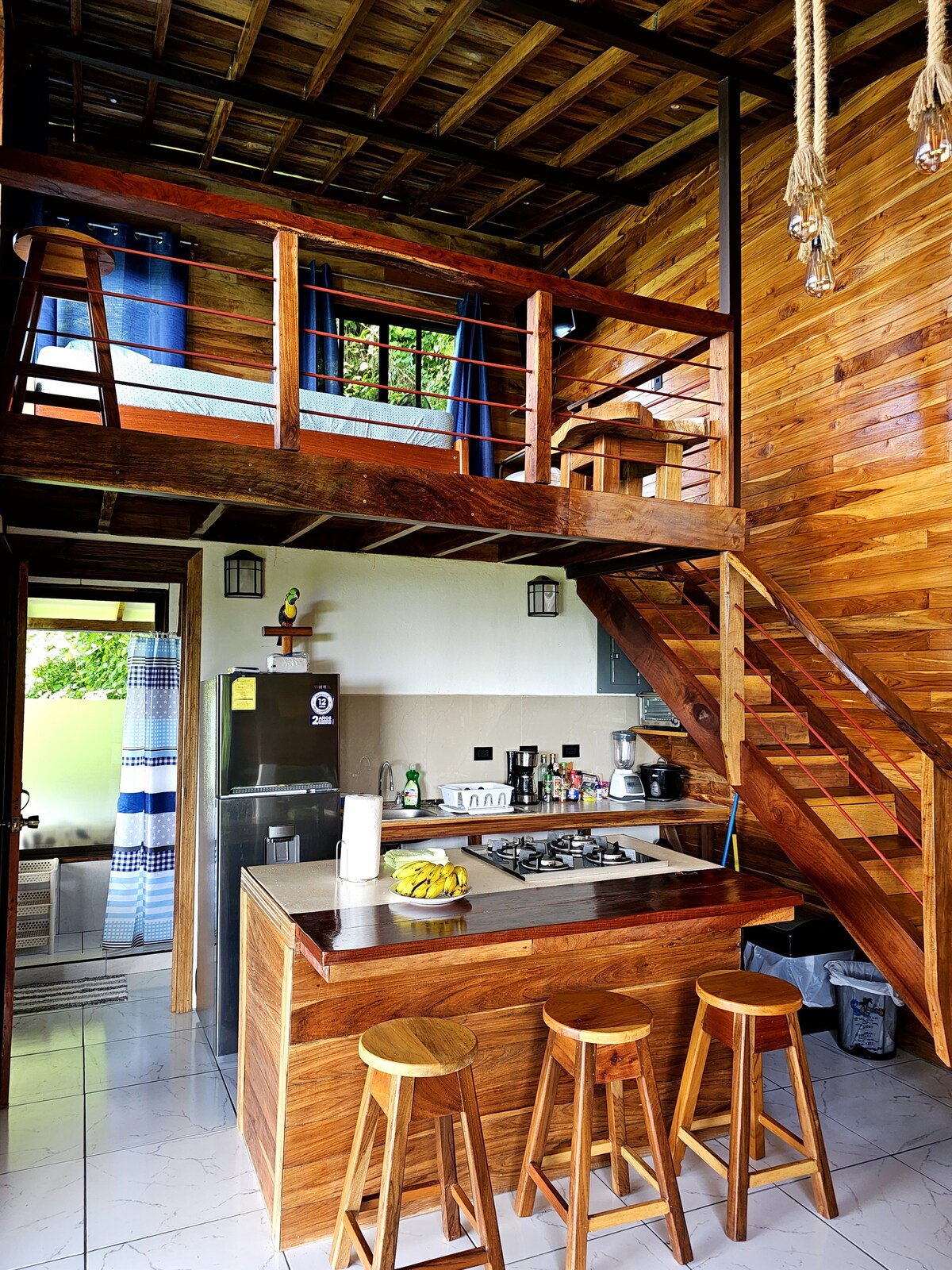 Ласкаво просимо до Aysana Jungle House, сучасного помешкання, розташованого в центрі природи, всього за 5 хвилин на автомобілі від пляжів і центру Санта-Терези. З будинку, розташованого над кронами дерев, відкривається приголомшливий краєвид на джунглі й океан, а також на мальовничі заходи сонця. Будинок, призначений для відпочинку, поєднує в собі чистий дизайн, комфорт і спокій. Вона може вмістити до 4 гостей і забезпечує все необхідне, щоб ви почувалися як вдома, в оточенні природи.