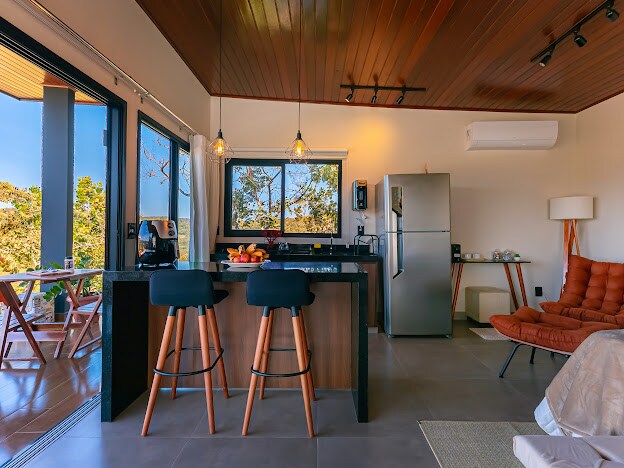 Lofts Vila da Serra - це найновіший запуск у Піренополісі. Завдяки чудовому розташуванню він розташований недалеко від вулиці для відпочинку та підпільного бару Чагінья. У лофті Novissímo можуть розміститися 4 людини, з двоспальним люксом і вітальнею з диваном-ліжком на 2 осіб і повноцінною ванною кімнатою. Тут є чарівне приватне джакузі на 7 осіб із доступом до ванної кімнати. Зона спільного користування на відкритому повітрі з басейном і водоспадом