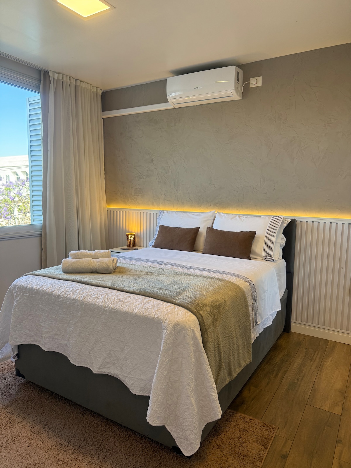 ⭐️ Тепер автоматизовано з Алексою! 50-дюймовий телевізор зі світлодіодним екраном, безкоштовне паркувальне місце, цілодобовий консьєрж, 24-год. коворк-простір для гостей, 3 гостей (матрац), басейн, фітнес-центр, пральня, дах на 19-му поверсі! Кухня з аерогрилем, мікрохвильовою піччю та тостером! • 2 хв до ⟶ PUCRS • 15 хв до ⟶ Consulado e Centro • Швидкий Wi-Fi • Ліфт • Кондиціонер • Netflix, YouTube, Disney+, Amazon, GloboPlay, + • Гнучкий час заїзду • Можна з домашніми тваринами (за попереднім повідомленням) • Поруч супермаркет! Рушники та постільна білизна включені! :)