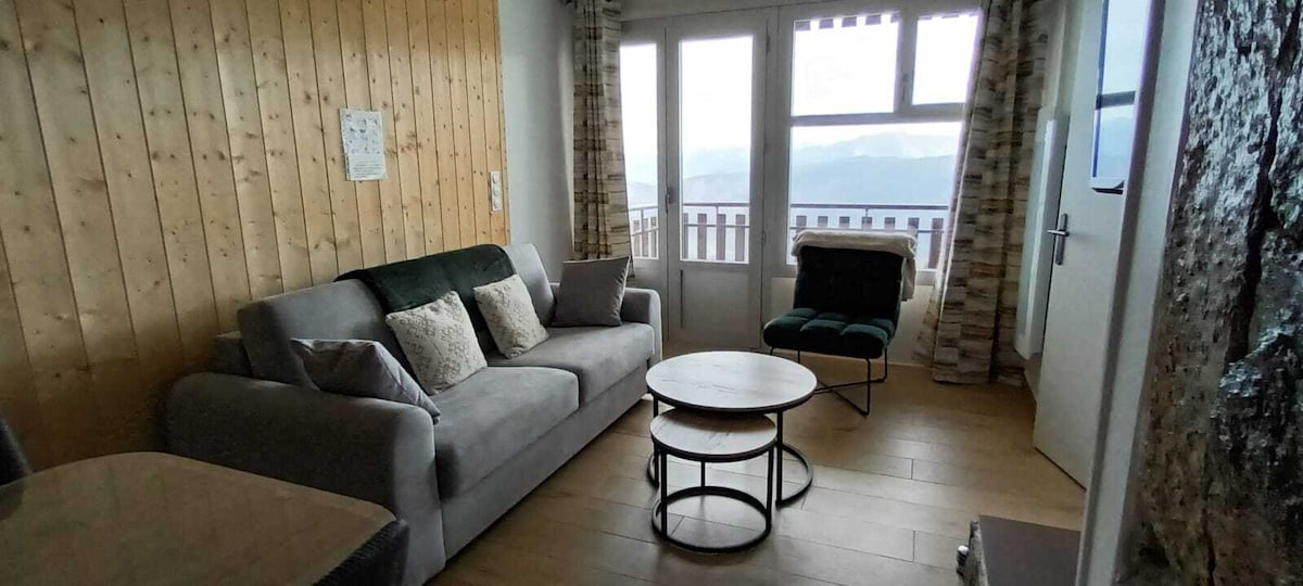 Ця квартира для 4 осіб розташована біля підніжжя схилів до антени. Резиденція «le grand schuss» розташована на 12-му поверсі, є ліфт. Ці апартаменти з балконом і приголомшливим видом на гори мають вітальню з диваном, який розкладається в ліжко, відкриту кухню з усім обладнанням і обідній стіл із плоским екраном. На вході ви знайдете двоярусні ліжка, а потім ванну кімнату. У підвалі є шафки для лиж.
