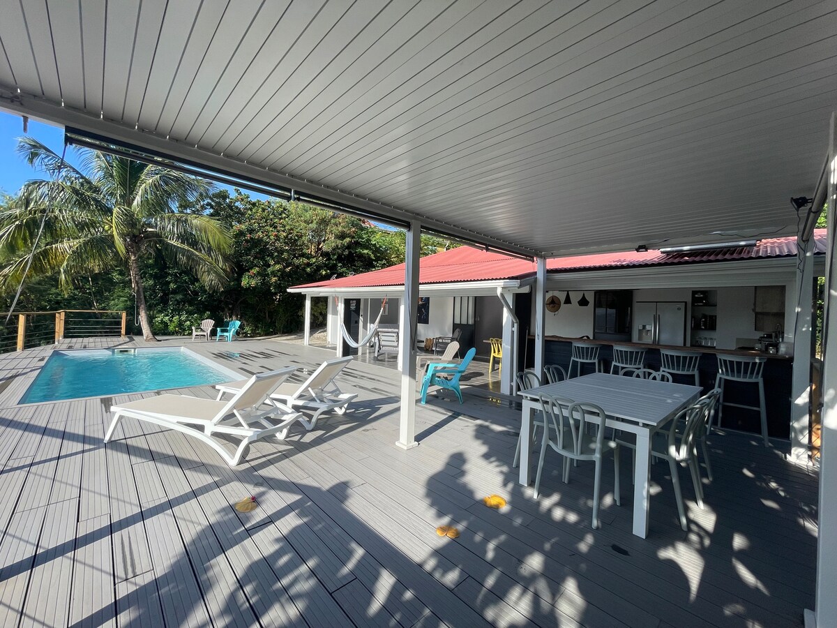 Будинок , вид на Карибське море на 180°. Пляж за 50 метрів. Повністю обладнана кухня (тарілка, мікрохвильова піч, посудомийна машина, пральна машина тощо), кондиціонер у спальнях, велика веранда площею 50 м2. Бар відкритий на веранді. Настил із солярієм і барбекю. Просторі кімнати зі сховищем. 2 ванні кімнати, 2 туалети. Вітальня та їдальня на веранді. Безкоштовний Wi-Fi (оптоволокно) Поруч зайнята дорога викликає шум автомобіля протягом дня. Ця незручність зникає ввечері та вночі.