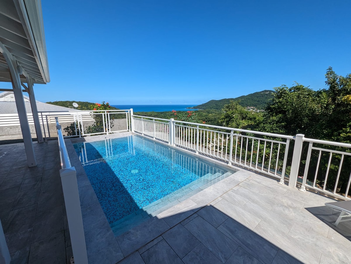 800 м від пляжу Гранд-Анс і 2 км від міста Деше, нещодавно відремонтована вілла з розкішним обладнанням. Без будь-яких видів, оточена тропічним лісом, ця вілла з червоного дерева з терасою та басейном відкриває чудовий вид на Карибське море та острів Монсеррат. До 7 осіб, 3 спальні з кондиціонером та 1 просторий антресоль. Чудово підходить для зустрічей сімей або груп друзів із комфортом. Лише тихе перебування, без вечірок.