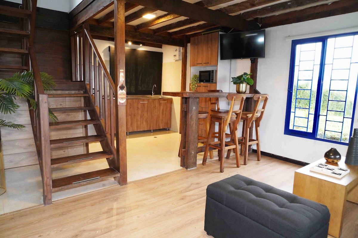 Пориньте в комфорт цього заміського помешкання з 2 спальнями та 2 ванними кімнатами, яке ідеально підходить для 8 гостей. Розташоване в центрі кавового регіону Колумбії, всього в декількох хвилинах від кафе Parque del Café та Panaca. Насолоджуйтеся незабутніми моментами з приголомшливим видом на ліс. ✔ Ціле помешкання виключно для вас ✔ Культовий дизайн ✔ Джакузі та безбортний басейн ✔ Повністю обладнана кухня ✔ Терраса Високошвидкісний Wi-Fi✔ Starlink ✔ Необов 'язковий сніданок Можна перебувати з✔ домашніми тваринами Ідеальний відпочинок і спілкування з природою!