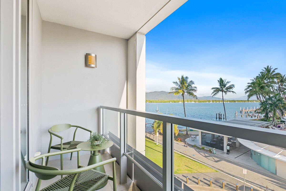 Ці просторі апартаменти з однією спальнею розташовані над терміналом Кернс-Ріф у районі Уотерфронт. Вони ідеально підходять для вивчення тропічного Північного Квінсленду. У комплексі є басейн, сауна, барбекю та обідні зони на відкритому повітрі, а найкращі ресторани та кафе Кернса розташовані просто внизу на набережній. Після дня, проведеного на рифі або у тропічному лісі, відпочиньте на балконі з напоєм і насолодіться відкритими краєвидами на затоку Трініті та околиці.