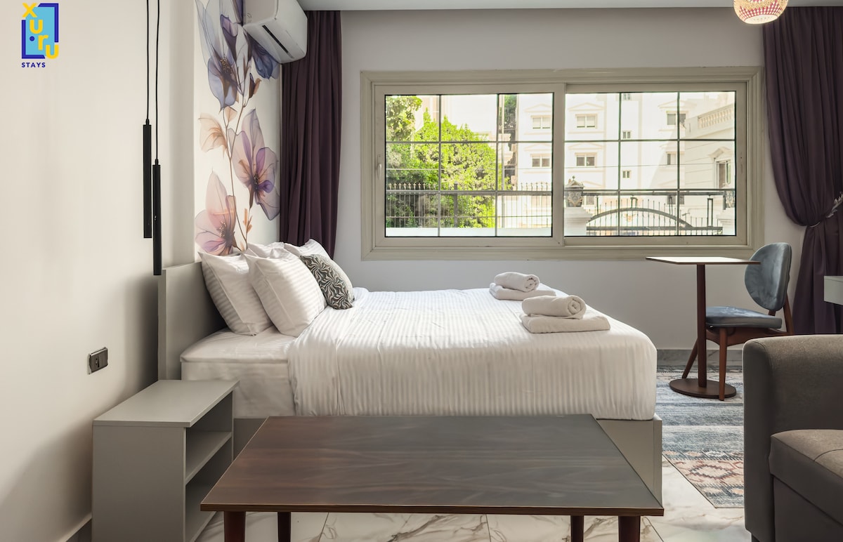 Відчуйте сучасний комфорт єгипетського шарму в цій квартирі, розташованій в центрі Каїра. Ви будете всього в декількох хвилинах ходьби від найвідоміших пам 'яток міста, зокрема річки Ніл, Єгипетського музею, базару Хан-ель-Халілі та історичних вулиць Старого Каїра. ✨Простора мебльована вітальня з шикарним декором ✨Затишна спальня з постільною білизною преміум-класу для спокійного перебування ✨Високошвидкісний Wi-Fi та смарт-телевізор для розваг ✨Кондиціонер, щоб ви почувалися комфортно цілий рік Затишна квартира.
