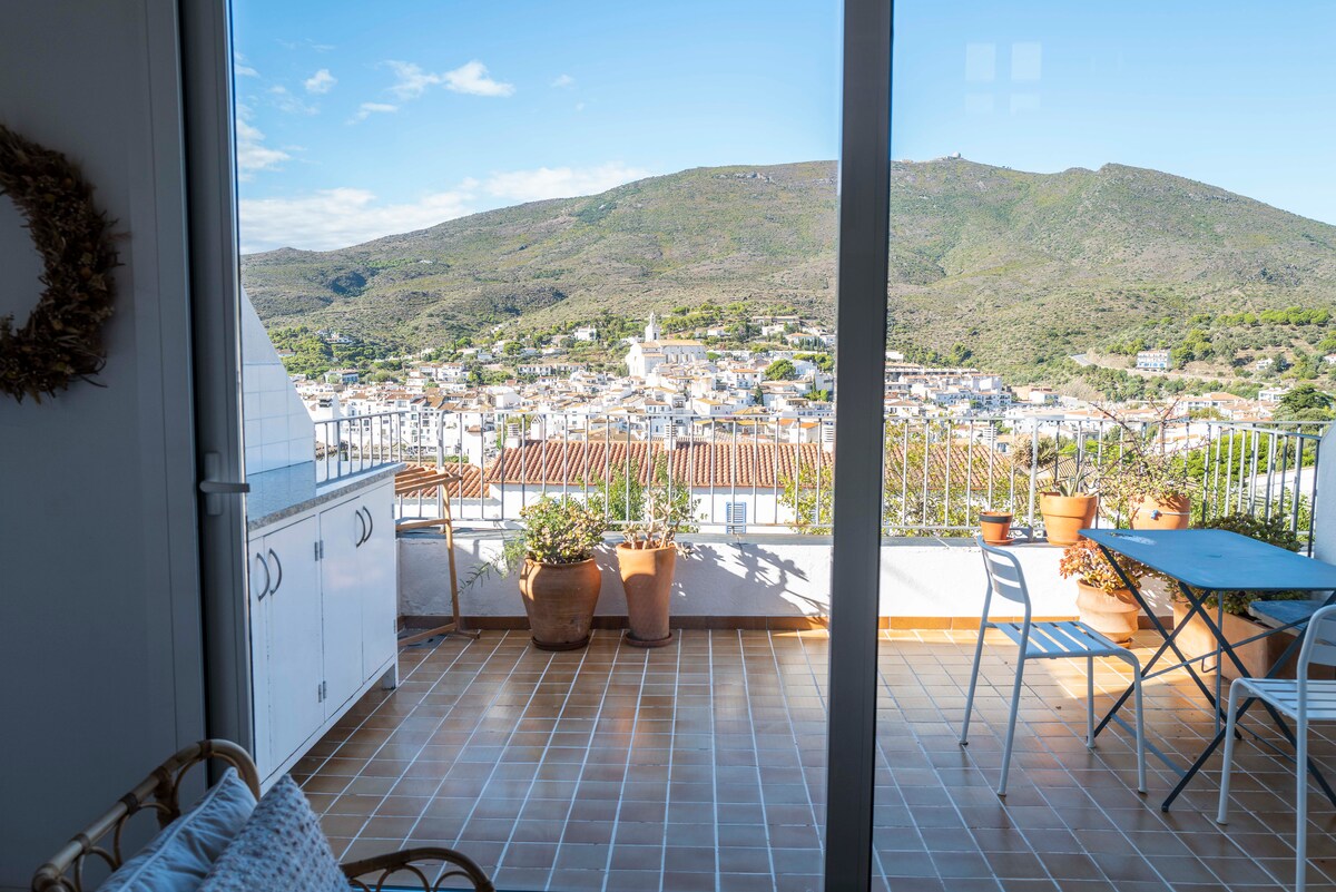 Appartement dans Cadaques avec belle terrasse sans vis à vis. Très calme. Idéalement placé entre le centre du Village et la maison de Dali à Port Lligat. Tout se fait à pied. Vues mer, village et montagne. 2ème et dernier étage. Draps et serviettes inclus Apartment with amazing views in Cadaques. Very quiet. Village, shopping, beach et mountains in 5 minutes walking. Bed linen and towels included