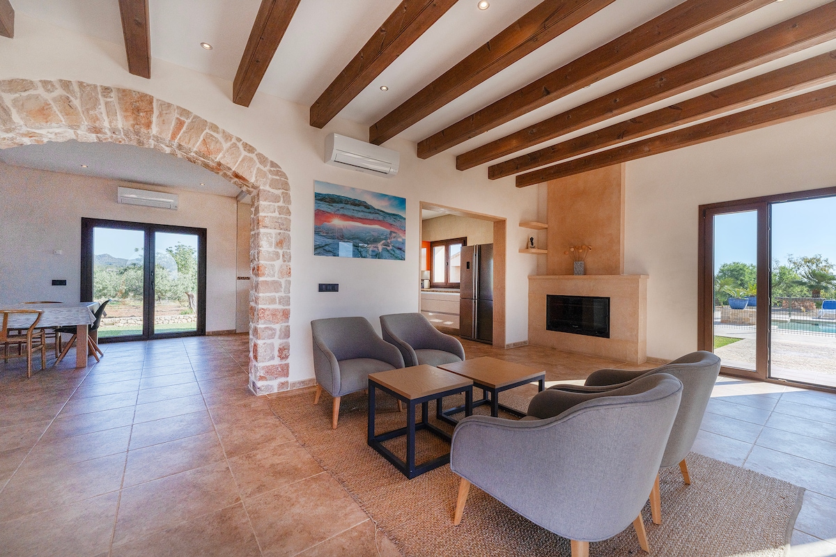 Es Bellveret - це затишна кімната з дивовижним мирним краєвидом і 15-метровим панорамним басейном із солоною водою, що ідеально підходить для відпочинку та насолоди сонцем Майорки в оточенні природи та птахів. Вона розташована поблизу міст Манакор, Сант-Льоренс і Арта, а також багатьох пляжів. Стиль - це поєднання сучасного та сільського, прикрашеного традиційними деталями Майорки. Якщо ви хочете відпочити в горах і узбережжі Майорки, не соромтеся відвідати нас.
