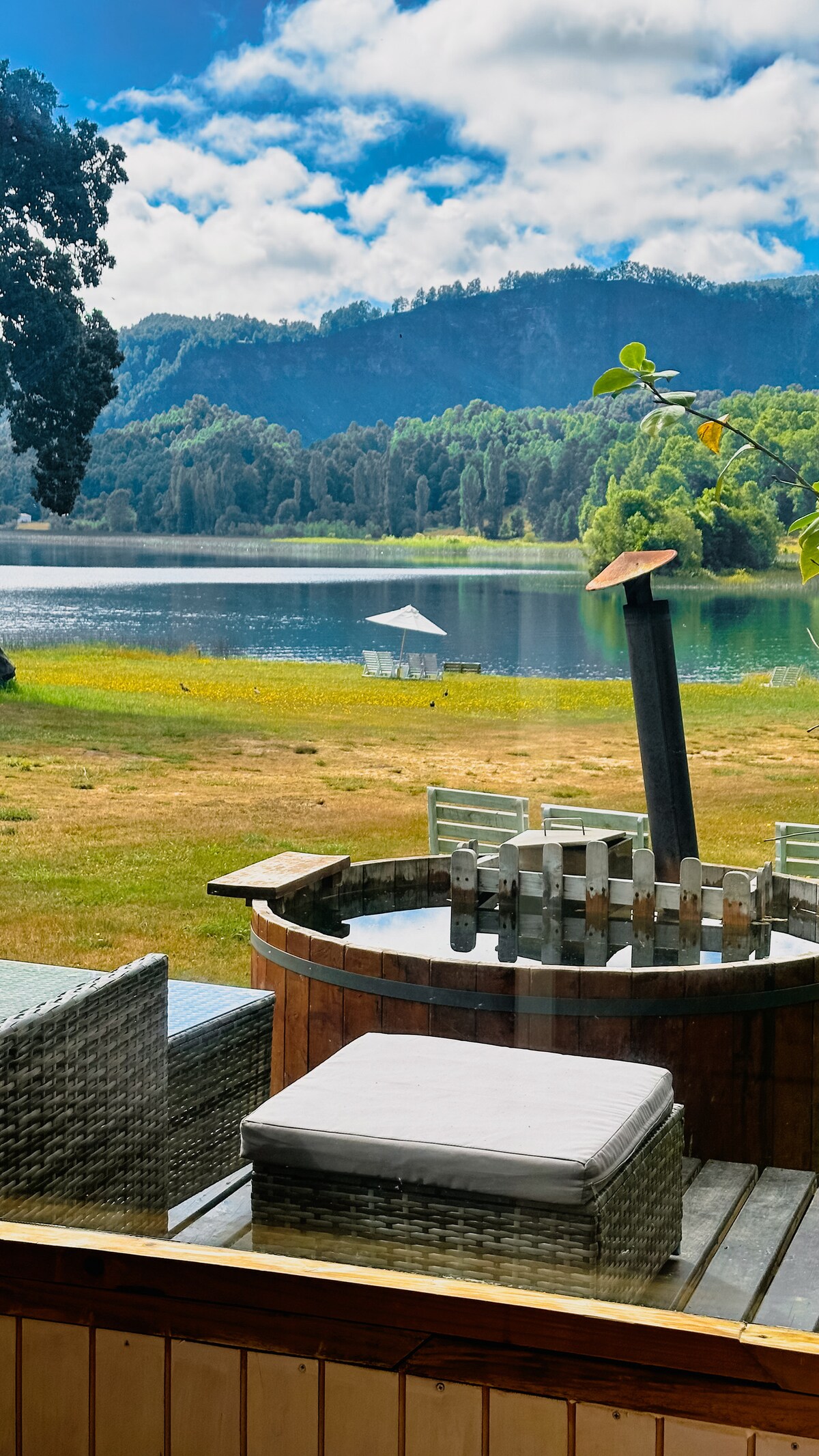 Відпочиньте в цьому спокійному та елегантному помешканні. Цей нещодавно побудований будинок має 3 спальні, 2 ванні кімнати та простору вітальню з великими вікнами з видом на озеро Пуллінк і вулкан Вільярріка. Насолоджуйтеся дерев 'яною гідромасажною ванною на передній терасі. Розташоване на половині гектара місцевого лісу, воно ідеально розташоване між Коньяріпе та Пангіпуллі, біля гарячих джерел та багато іншого.