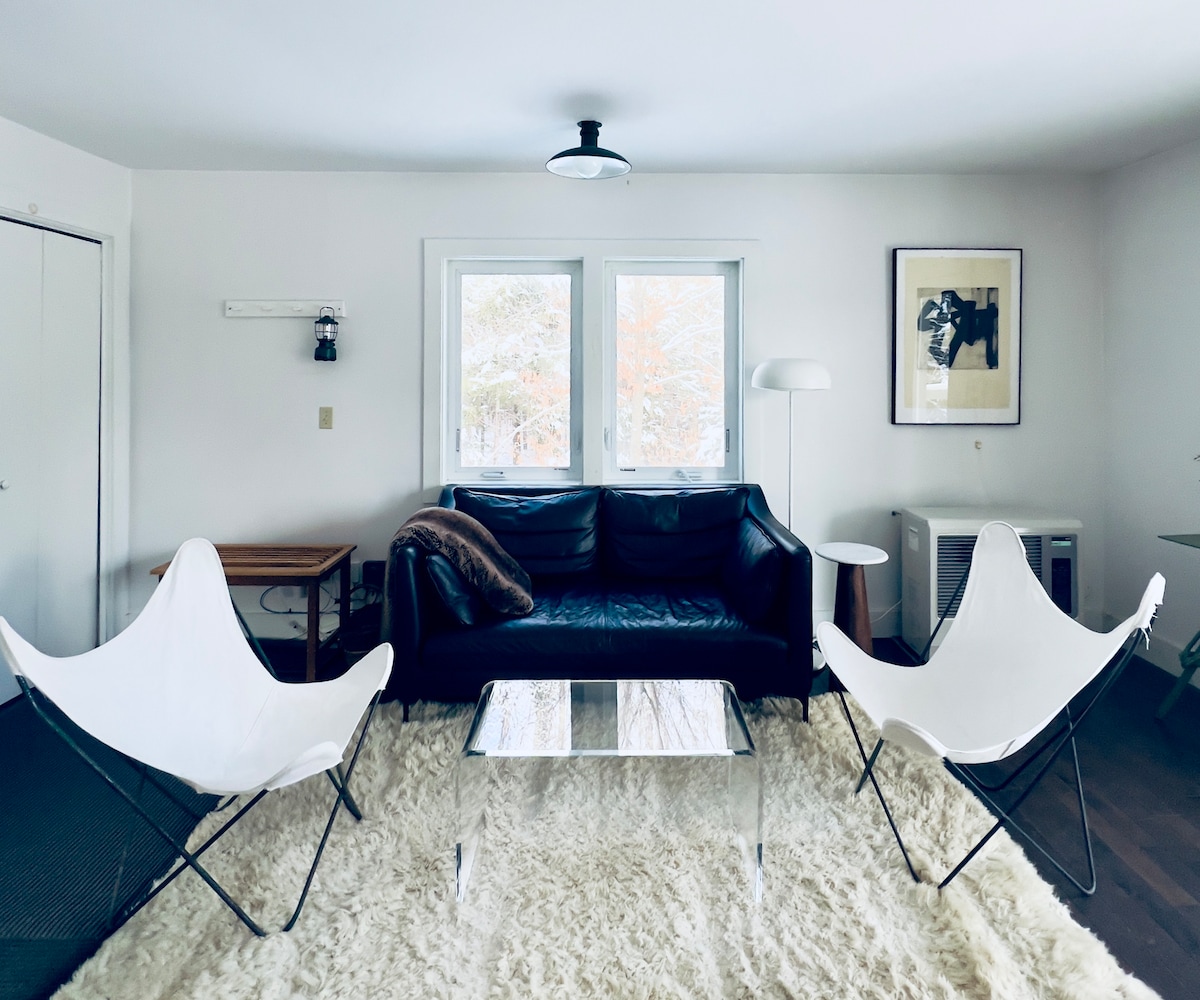 **Акція на вихідні: забронюйте 2 ночі (пт і сб, нд зі знижкою 50%)** Сучасний затишний будиночок у дикій, незабудованій гірській місцевості Вустер у Вермонті. Цей затишний притулок, оточений дикою природою та лісовими краєвидами, пропонує бібліотеку, програвач, художні матеріали та простір для творчості або відпочинку. Відкрийте для себе місцеву культуру, катання на лижах, місця для купання та відпочинку для душі – або просто влаштуйтеся, запаліть свічку і нічим не займайтеся. Ласкаво просимо до доброзичливих домашніх тварин.