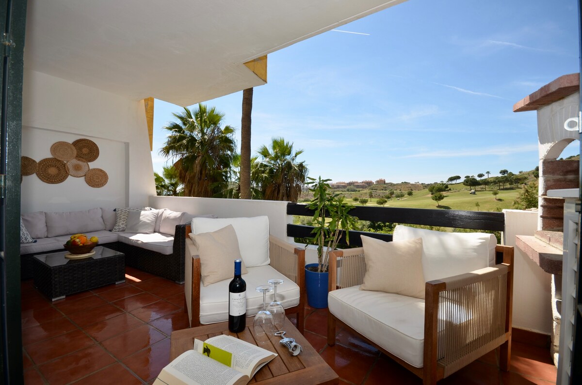 Ця сучасна квартира площею 100 м2 біля підніжжя гір Міхас оточена красивим садом і має багато приватності. Є окремі басейни, сауна, тренажерний зал і джакузі безкоштовно. На сонячній терасі (з ранку до 16:00) площею 75 кв. м, частково покрита, ви маєте чудовий вид на поле для гольфу Каланова, Середземноморське море та гори Міхас. Тут є набір для відпочинку, 2 шезлонги та обідній стіл. Усе розкішно, ідеально підходить для нових чудових моментів відпочинку.