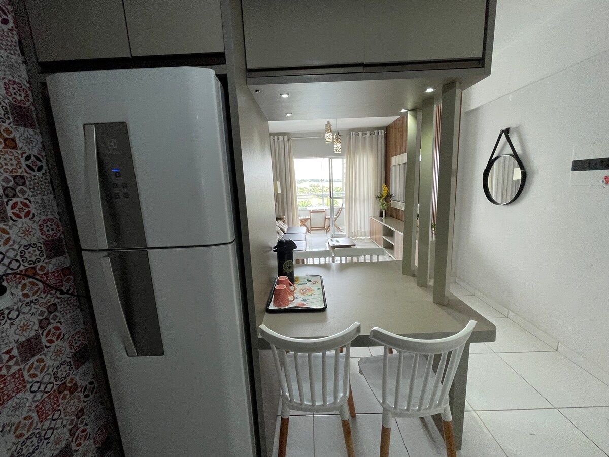 Квартира високого класу в найкращому житловому районі Калдас-Новас, зі стратегічним і центральним розташуванням. Ми надаємо пріоритет чистоті та комфорту. Максимальна кількість гостей – 6 осіб (включаючи дітей). 10 басейнів (гарячі та холодні термальні води) 2 офуро / сауна / тренажерний зал Кінотеатр для дорослих/бібліотека іграшок/кінотеатр для дітей Аркадна кімната/ корт Снек-бар і бар. Обертається місце для 1 автомобіля.