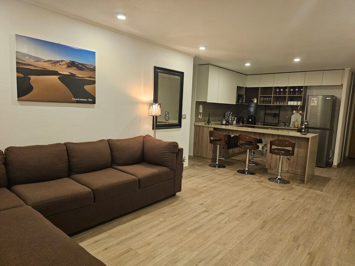 Простора повністю обладнана квартира з 2 спальнями, 2 ванними кімнатами, великою терасою, патіо та приватним квінчо, розташована в закритому кондомініумі, з 1 приватною парковкою, в декількох кроках від Bahía Inglesa (красивий пляж) та всіма ресторанами в секторі.