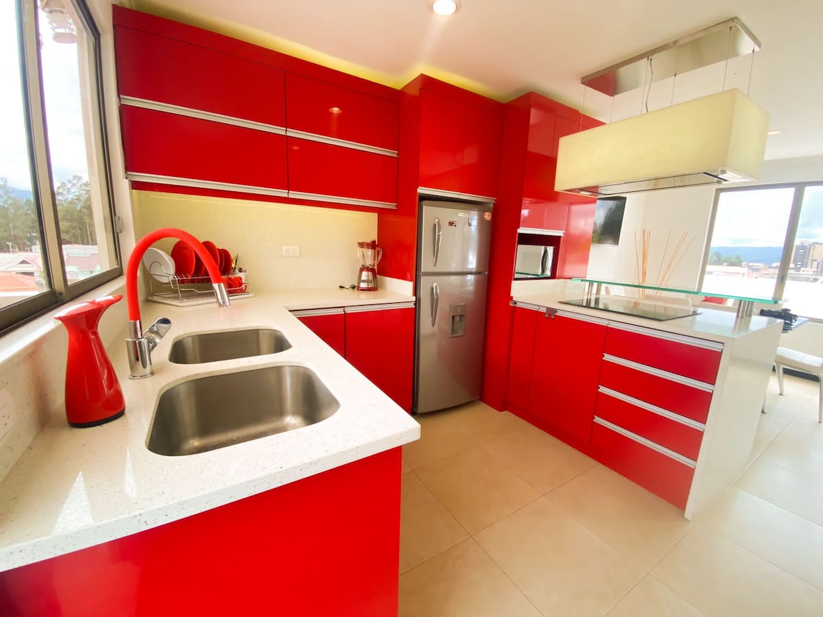 Простора, сучасна та світла квартира в 7 хвилинах від центрального парку та собору. Розташований у найбажанішому районі міста, цей пентхаус - це казковий і спокійний оазис у центрі Куенки. Вона має велику спальню з повною ванною кімнатою, світлу вітальню, туалет, пральню, обладнану кухню, приватну терасу та тренажерний зал. Площа площею 1500 футів² розташована на 2 поверхах для більшого комфорту гостей. Розташування, комфорт і послуги роблять це місце найкращим варіантом у Куенці.