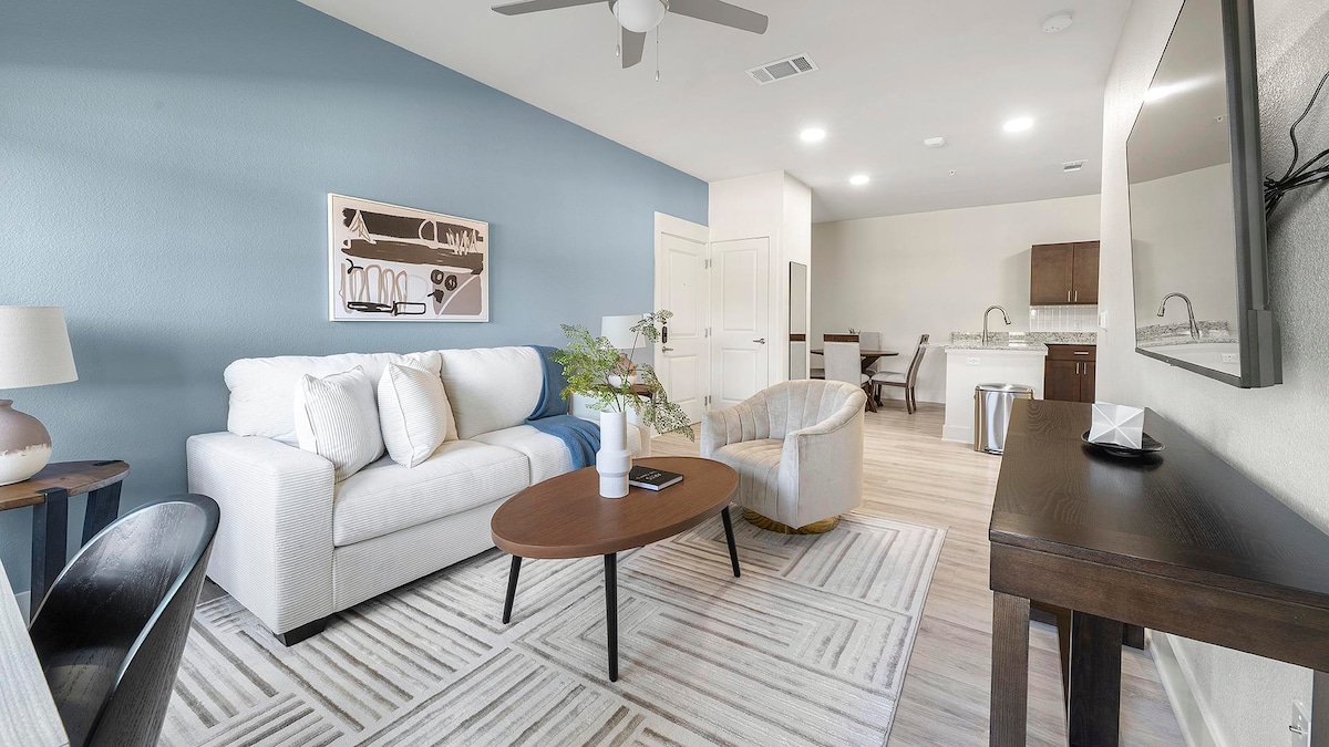 Overlooking the scenic Plum Creek Golf Course in Kyle, TX, The Green at Plum Creek is perfect for weekend getaways, extended stays, and everything in between. Our fully-furnished apartments include full kitchens, in-unit laundry, fast WiFi, and stylish furnishings. Step outside to unwind by the heated pool, get moving in the 24-hour fitness and yoga studios, or relax by the fire pits and grilling stations.