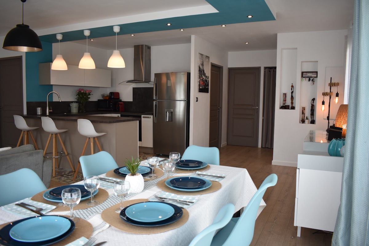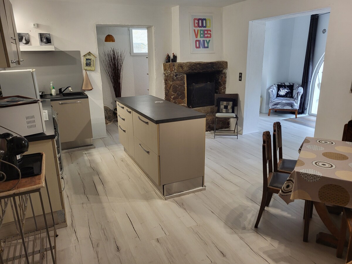 Сімейний будинок (всього 3 квартири) . Помешкання складається з 2 спалень, одна з двоспальним ліжком, а інша з двоспальним ліжком та двоярусним ліжком, красивою кухнею та ванною кімнатою. Усе відремонтовано, ви можете насолоджуватися садом з видом на село та гори. Ідеально підходить для сім 'ї або групи друзів! Ви будете недалеко від селища з його зручностями, SPAR, поштовим відділенням, пекарнею, м 'ясною лавкою, барами та ресторанами. Ми чекаємо на вас у цьому новому сезоні!