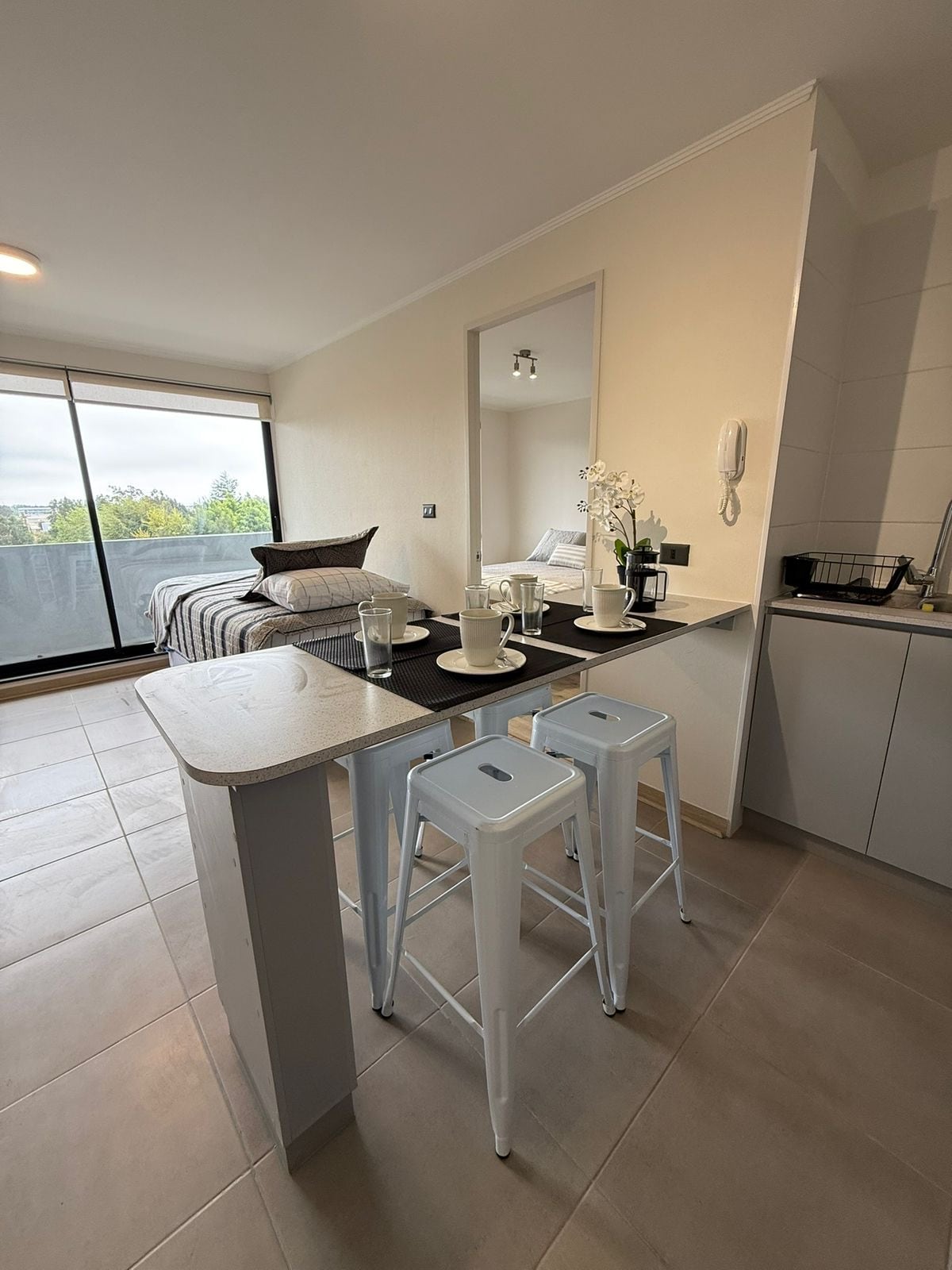 Насолодіться цим прекрасним і зручним помешканням у центрі Консепсьйона. У ньому є двоспальне ліжко Cic Premium, 1 ванна кімната, телевізор, Netflix та Інтернет. Обладнана кухня з духовкою, 2-конфорковою плитою, витяжкою, посудом, чайником, тостером, мікрохвильовою піччю тощо. Цілодобовий доступ до консьєржа. Не можна перебувати з домашніми тваринами.