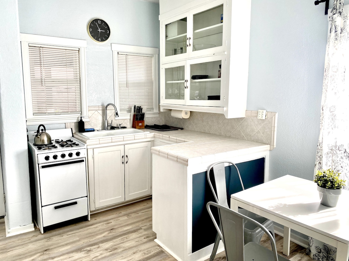 Ця студія в центрі міста має повнорозмірну кухню, високошвидкісний Інтернет і знаходиться в декількох хвилинах ходьби до всього. Розташований посеред центру Сакраменто-Мідтаун. Прогуляйтеся до пам 'яток та гарячих точок, насолоджуючись комфортом, який виглядає як другий будинок з ліжком queen-size та спеціальним робочим місцем. Ідеально підходить для віддаленої роботи та вивчення міста. Поруч концертні майданчики, чудові ресторани, центр Golden1, конференц-центр Safe Credit Union, Капітолій штату та Старий Сак.