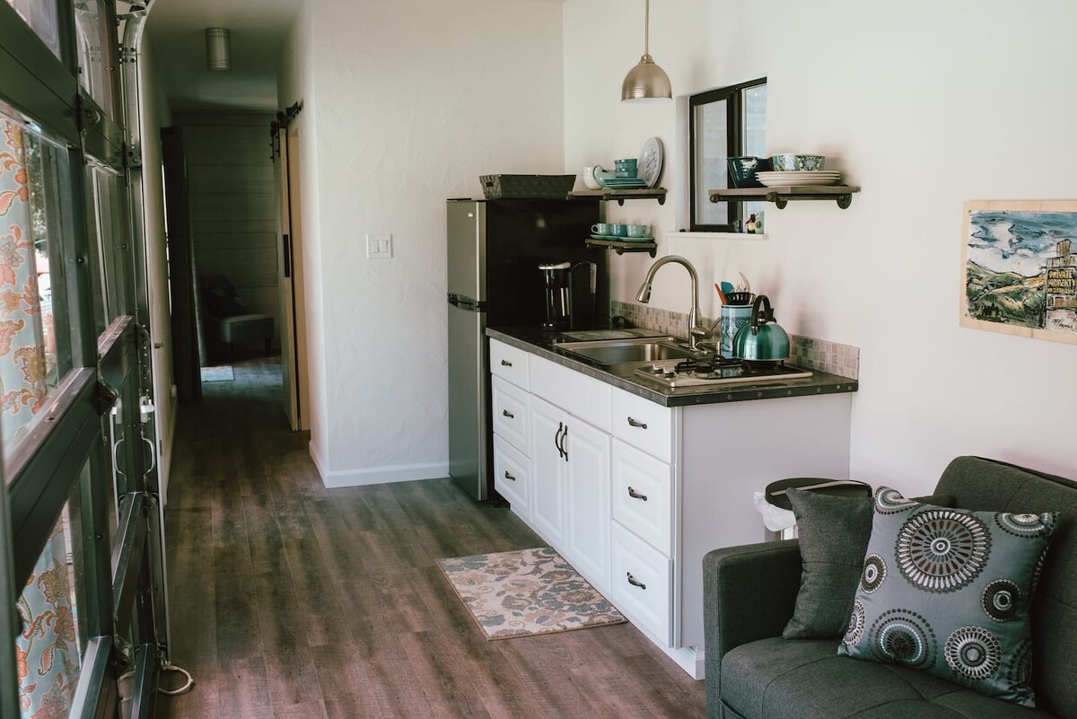У нашому спеціальному місці ви отримаєте найкраще з обох світів: чистий, сучасний і комфортно облаштований крихітний будинок на ранчо з дуба в оточенні природи. Досить близько до міста, пляжів, виноробень і ресторанів для зручності, перебуваючи достатньо далеко, щоб відпочити. Ознайомтеся з креативними та гнучкими приміщеннями зсередини (покриття житлових приміщень через ліжко Мерфі до спальної зони з ліжком queen-size) та зручний задній дворик для відпочинку на відкритому повітрі.