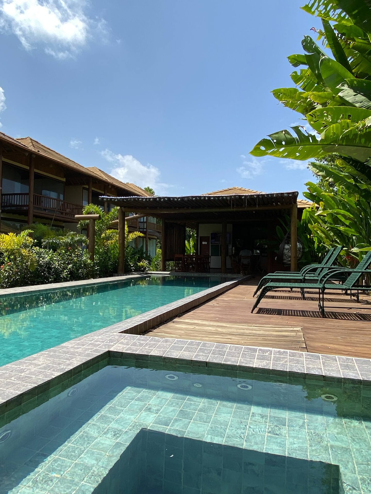 Люкс із кондиціонером, Wi-Fi, міні-баром, басейном, гамаком і зеленою зоною 5 хвилин від пляжу та 900 метрів від села Барра-Гранде. Рай найкрасивіших пляжів, серед яких природні басейни Тайпу-де-Фора, Понта-ду-Мута, між катанням на квадроциклах і швидкісними човнами. У нас є спільне приміщення з плитою, холодильником, раковиною та базовим кухонним посудом, щоб ви могли приготувати сніданок та інші страви самостійно. У помешканні є всі засоби для прибирання відповідно до Airbnb та місцевих протоколів