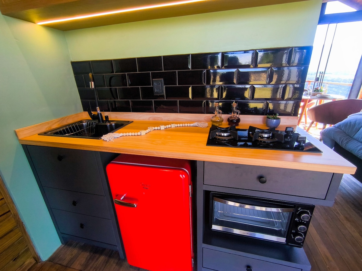 O chalé oferece todo o conforto para uma estadia relaxante e sem preocupações. Disponibilizamos roupas de cama e banho de alta qualidade, além de roupões e pantufas, pensados para proporcionar uma experiência ainda mais aconchegante. Para momentos de autocuidado, os hóspedes contam com amenities especiais, como sais de banho, espuma de banho. A cozinha é completa e totalmente equipada, com forno, frigobar, torradeira, chaleira elétrica.