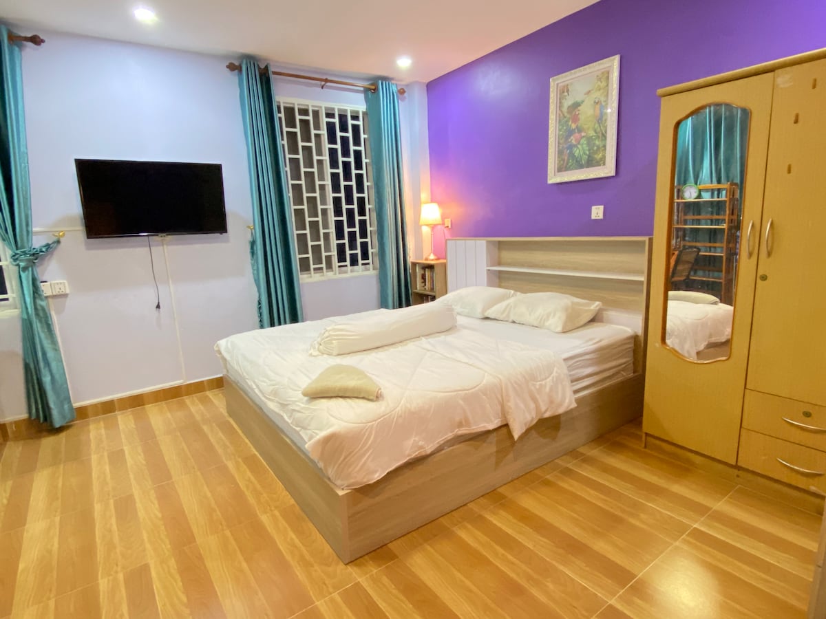 Art HOUSE, красивий декор і велика кімната, пропонує 4 спальні з двоспальними ліжками розміру King size з диваном у всіх кімнатах, приватний басейн, їдальню, кухню, зону відпочинку, сад і парковку. Усі кімнати просторі, красиві, з балконом, диваном, окремою ванною кімнатою з окремою ванною, душем та туалетом, письмовим столом, кондиціонером, стельовим вентилятором. Розташована в тихому, безпечному районі, лише за 10 хвилин пішки до ресторану, кафе, супермаркету та за 5 хвилин їзди від храмів Ангкора. Пропонуйте прибирання прибудинкової території щодня, спальні – кожні 2 дні.