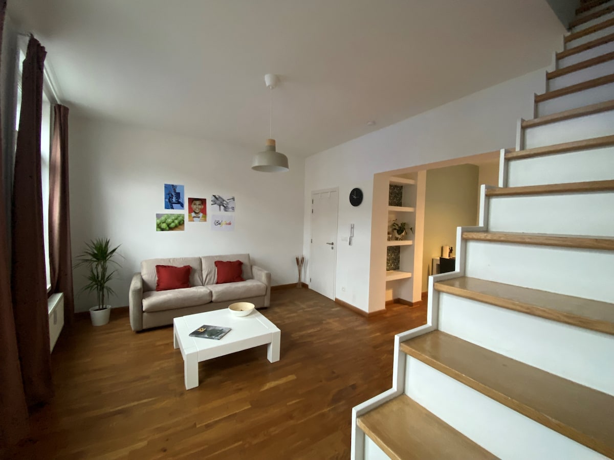 Ласкаво просимо до нашого елегантного дуплексу Ікселя - гавані спокою в центрі Брюсселя. Завдяки ретельному дизайну та ідеальному розташуванню він пропонує ідеальний баланс між сучасним комфортом і місцевим шармом. Насолоджуйтеся затишною спальнею, світлою вітальнею та зручною кухнею для незабутнього перебування. Ванна кімната та друга спальня знаходяться внизу. Це ідеальне місце, щоб легко досліджувати місто, розташоване всього в декількох кроках від кафе, ресторанів і культових місць.