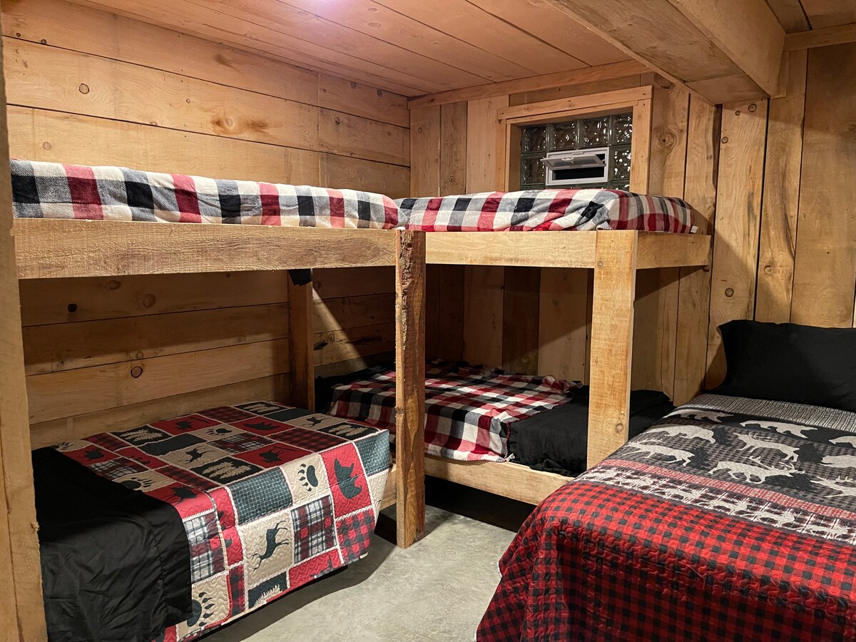 Ласкаво просимо до Fawn Hollow Retreat, просторого мисливського зрубу з 7 спальнями, 2 ванними кімнатами та величезною захищеною від негоди терасою. Насолоджуйтеся більярдним столом у підвалі, безбар’єрним доступом, великим смарт-телевізором у затишній вітальні та повністю обладнаною кухнею. На відкритому повітрі ви можете досліджувати ліси, грати на великому підстриженому газоні або збиратися біля багаття з дровами, які надаються. Ідеально підходить для любителів природи, які шукають комфорт і пригоди.