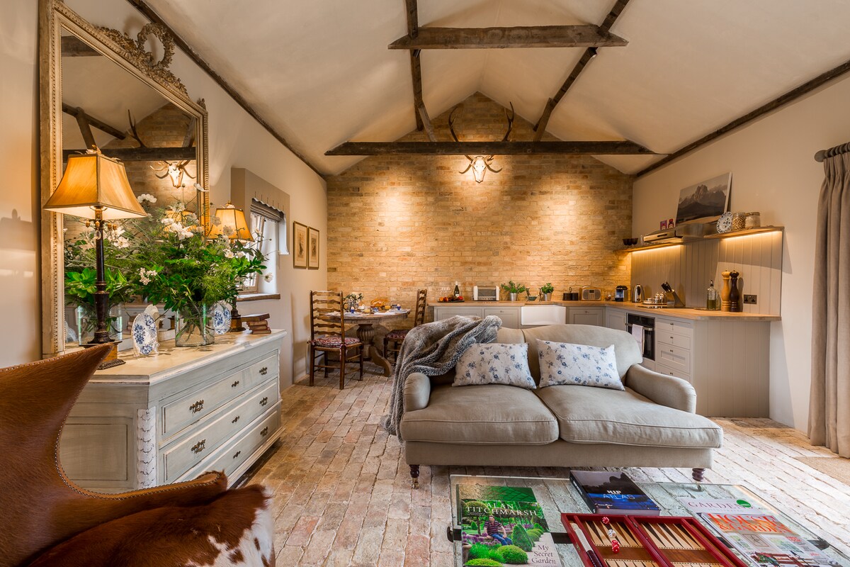Студія Hazelnut - це красивий гостьовий будинок з одним ліжком, розташований у саду котеджу II ступеня. Він розташований за 5 миль від історичного університетського міста Кембридж, до якого легко дістатися на автомобілі, автобусі або велосипеді за допомогою хорошого велосипедного маршруту. Поруч зі студією є безкоштовна парковка на вулиці. Сам гостьовий будинок має сучасну атмосферу з новою ванною кімнатою, столом і стільцями та новим зручним ліжком розміру Queen size. Ви також матимете доступ до патіо з обідньою зоною на відкритому повітрі та красивим садом.