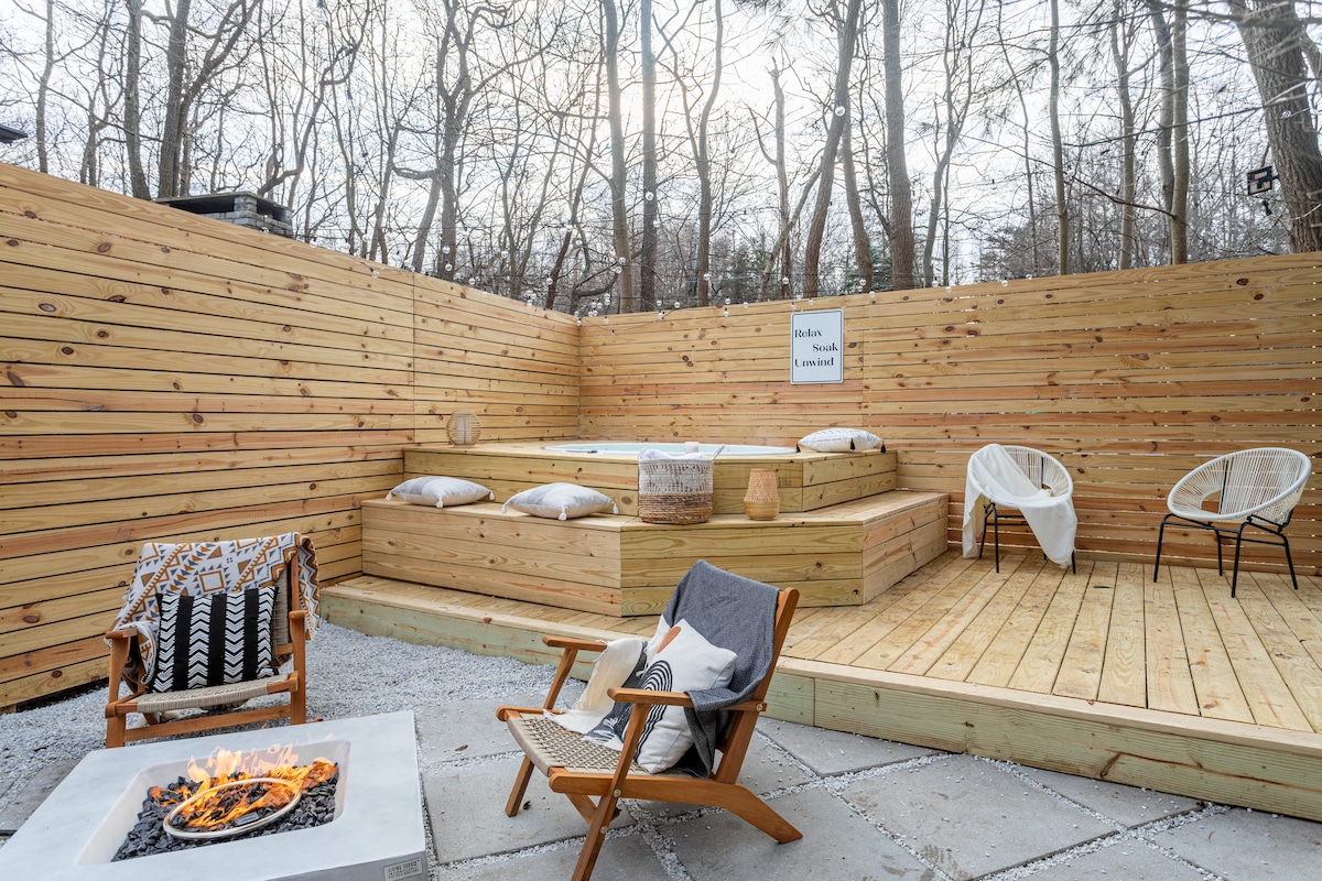 Вечори в джакузі, ігри, чаша для багаття та телевізор на відкритому повітрі
