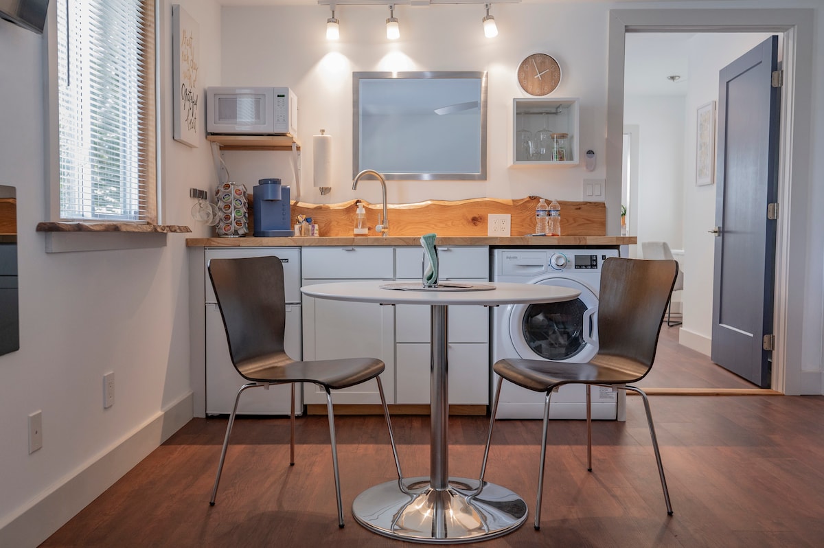 У цьому спокійному помешканні, розташованому в центрі міста, все просто. Зручне ліжко з двома односпальними матрацами, стіл, шафа, комод, штори для затемнення кімнати та унікальні кутові вікна з видом на ліс Блеквотер-Крік. Ви також знайдете 10 найкращих зручностей, зокрема повністю обладнану кухню: кава, чай та закуски, швидкий Wi-Fi, пральня, центральне опалення, кондиціонер, самостійне прибуття (вхід без ключа), місце для роботи на ноутбуці, безкоштовне паркування та можливість перебування з домашніми тваринами. Насолоджуйтеся тихими місцями, як-от закритий ґанок; спілкуйтеся з господарем за бажанням.