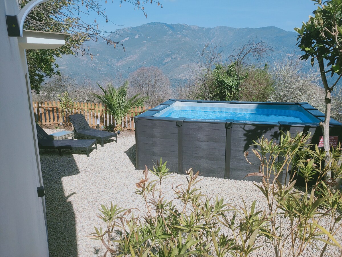 Красива незалежна міні-віллаT2 з неопалюваним приватним басейном. Кондиціонер, зручний у прекрасному помешканні, з панорамним видом на гори, макі, які вас здивують. У цьому природному просторі, де можна побачити хижих птахів (Mylan), цей маленький куточок пропонує вам зразок того, що ви відкриєте на нашому острові. Близько до всіх магазинів, у тихому районі, 15 хв від Бастії, 10 хв від моря, 15 хв від аеропорту Поретта, 20 хв від Сент-Флоран.