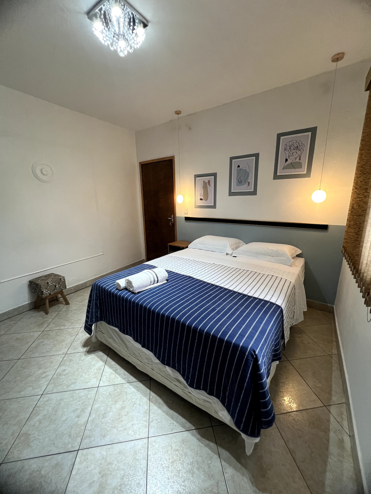 Бунгало має 2 спальні (апартаменти для пари, а інша з 2 односпальними ліжками), соціальну ванну кімнату, кухню, обладнану холодильником, мікрохвилями та плитою. Виявлено телевізор та їдальню, двір і гараж. У зоні відпочинку готелю є басейн з кондиціонером, дитячий майданчик, гамак, ігри, фітнес-центр і каплиця. Ми приймаємо домашніх тварин, однак за кожну домашню тварину стягується плата в розмірі 60,00 реалів на день, яка має бути врегульована безпосередньо в закладі. Якщо ви берете з собою домашнього улюбленця, повідомте нас заздалегідь.
