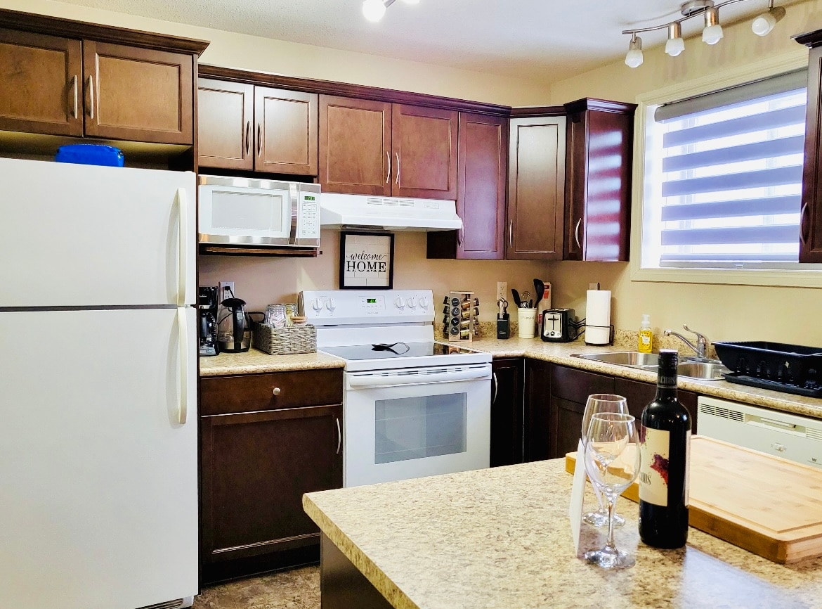 Це дворівнева квартира в 4-комплексі, де ніхто не перевищує або нижче вас. Воно розташоване в гарному районі і знаходиться на відстані короткої поїздки від магазинів, ресторанів та стадіону Енкана-Арена. Поставляється з повністю обладнаною кухнею, а також пропановим барбекю. Також є робочий стіл і робоче місце, що робить його ідеальним, якщо ви працюєте з дому. Парковка розташована неподалік від дверей. У нас є кілька помешкань у цьому 4 помешканні, тому, будь ласка, зв 'яжіться зі мною, якщо ваші дати недоступні. Oasis Corporate Rentals.