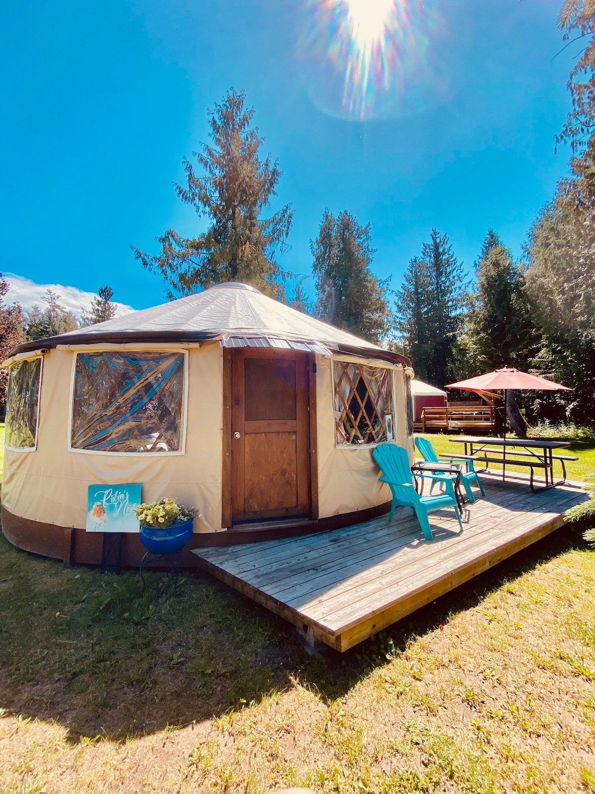 Відкрийте для себе приховану перлину всього за дві години на північ від Вістлера. Пориньте в природу та спокійне усамітнення в оточенні величних гір і чистого блакитного озера з пляжем. Розташований у лісі, ви зупинитеся в затишній юрті з міні-кухнею, дров 'яною плитою та ліжком розміру «king size», щоб забезпечити ваш комфорт. Приватна кедрова сауна на березі озера - це необов 'язковий додаток за 99 $ За межами юрти є стільці та пропановий камін (необов 'язково за 35 $ за пропан). Проточна вода, гарячий душ та прибудинкова територія