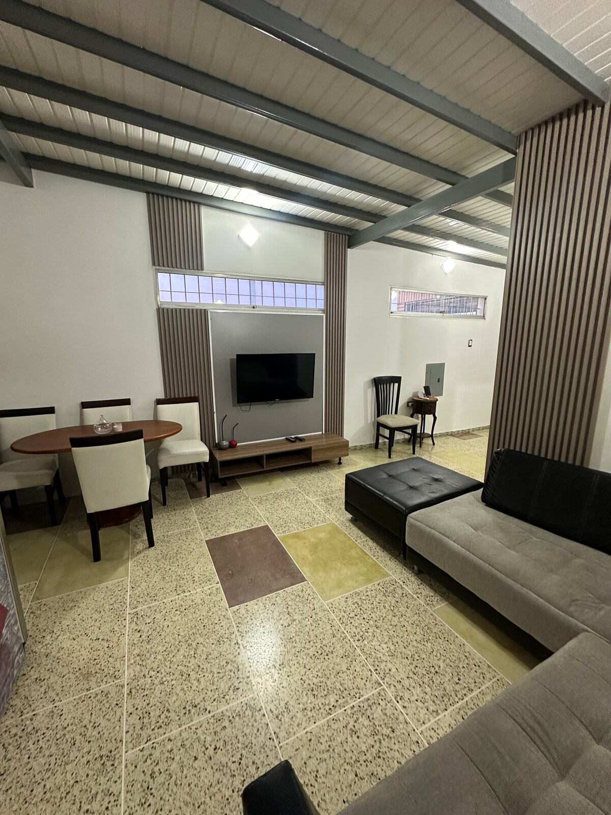 Bienvenidos a la ciudad Musical de Venezuela… Desde este alojamiento céntrico todo el grupo podrá disfrutar del fácil acceso a todo, a 5 min del aeropuerto, a 5 min del centro y a 5 min de la zona industrial. Tranquilo y acogedor, podrás descansar y realizar tus diligencias muy fácilmente. Tiene 2 habitaciones. La principal con baño. Un baño en el pasillo. Cocina, sala y comedor. Agua caliente, servicio de wifi y TV por cable. Cualquier duda comunícate a través de chat