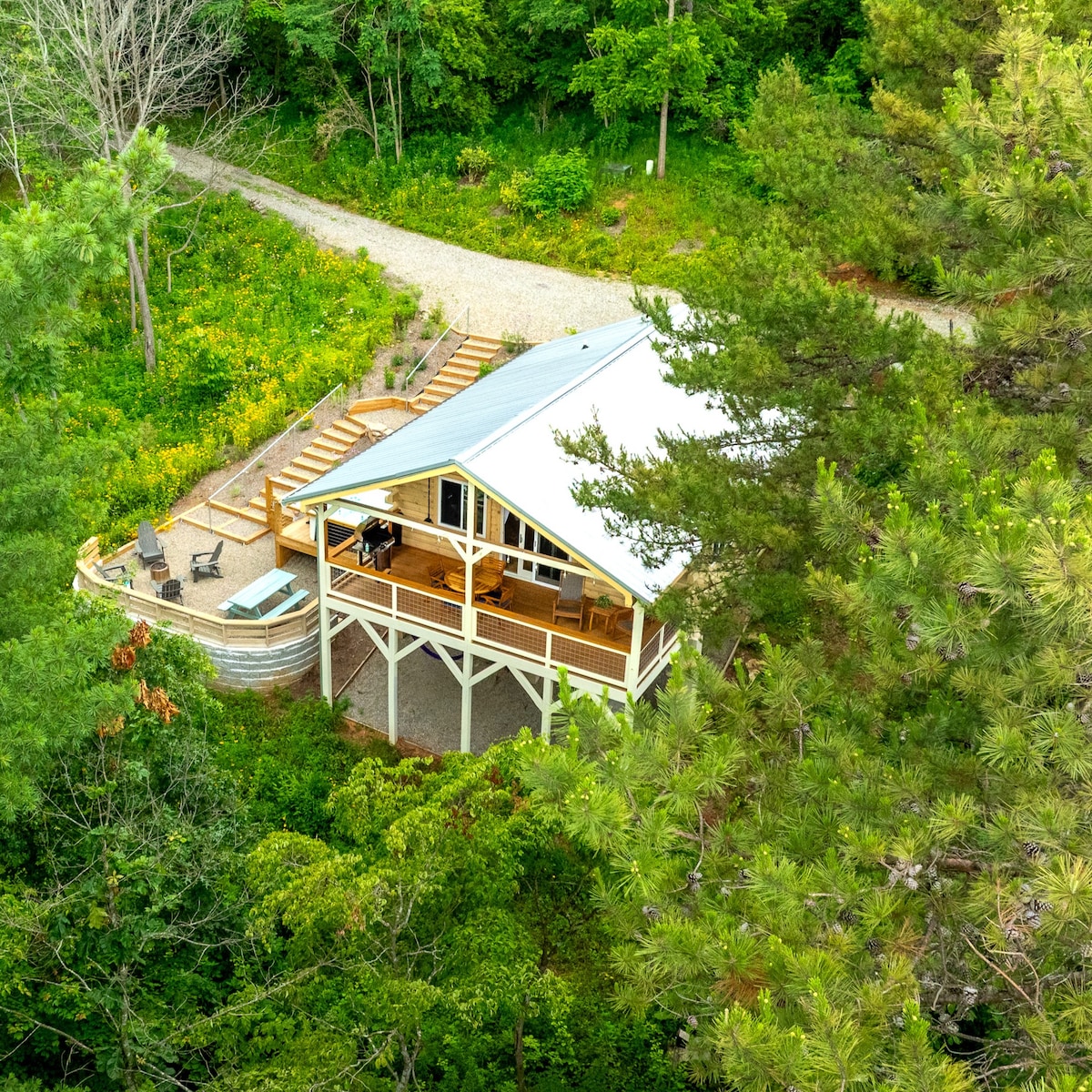 Відпочиньте під спокійні звуки струмка і станьте одним цілим із природою в цьому крихітному зрубі площею 384 кв. фути. «Creekside Hideaway» - це втеча до простішого способу життя. Проведіть романтичний час у гідромасажній ванні на двох осіб з видом на бурхливий струмок. Створіть вогонь у вогнищі та смажте на критому ганку. Насолодіться грою в корнхол, пограйте або поплавайте в освіжаючій затоці, насолодіться звуками природи, відпочиваючи в гамаку, прогуляйтеся в тиші або просто посидіть і погойдайтеся цілий день, спостерігаючи за природою!