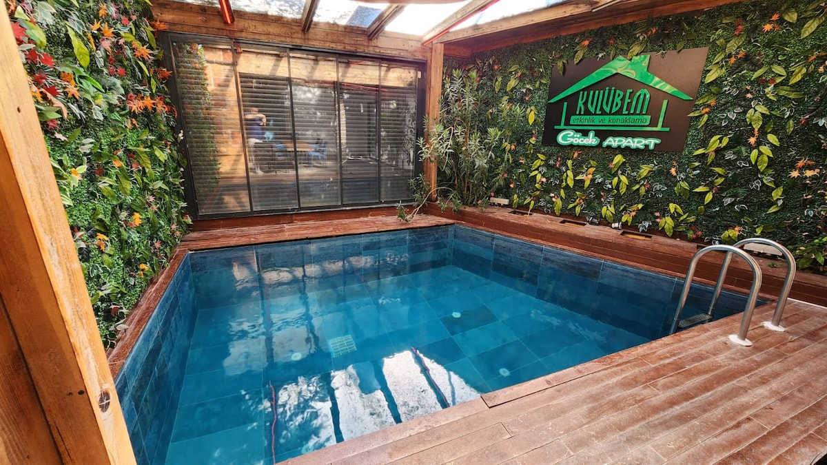 Це унікальне місце має свій унікальний стиль. Басейн із теплою водою, камін, кедрове дерево, сезонні будинки, веранда, барбекю, великий сад, телевізор із великим екраном, стильна ванна кімната, унікальне місце прямо в центрі міста, сотні кілометрів, не потрібно їхати до Сапанки, 7 км до Кизілая. ТРАНСФЕР 🌿 Примітка. Особливо бажано підігрівати басейн восени та взимку. Він працює лише за запитом через високу вартість електроенергії. За запитом під час перебування загальна ціна визначається до прибуття.