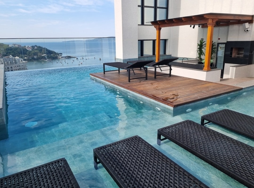 Bombinhas com piscinas aquecidas flat p/ 4 pessoas