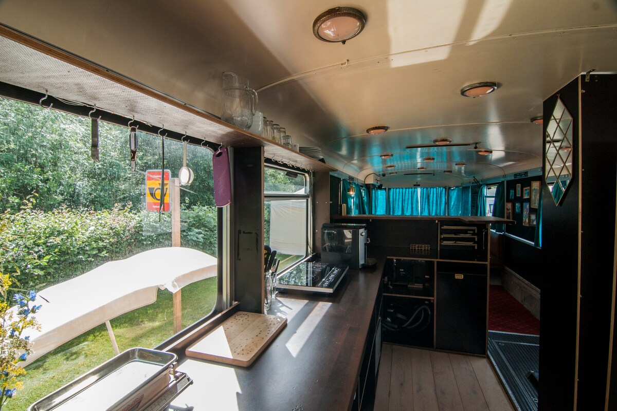 Автобусна зупинка, bed n bus, ночівля в старовинному поштовому автобусі