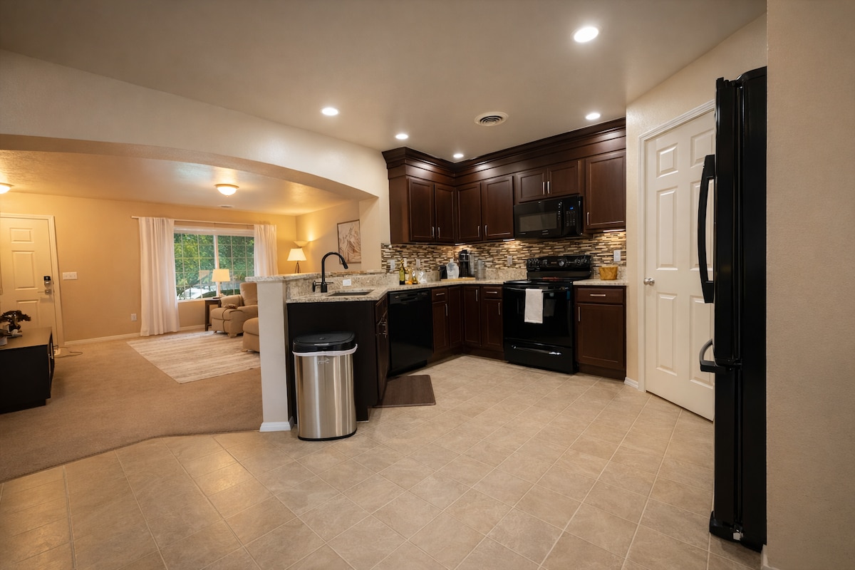 The Yale Main House is the perfect combination of convenience and comfort! The property is only 5 minutes away from the freeway and at the very entrance to the neighborhood; so you won't have trouble finding it. However, once you step inside you'll instantly feel at home with the warm, comforting decor and natural light. The kitchen and living room are connected in an open floor plan featuring double doors which open to a deck, and a wonderfully sized front window to let the sun in.