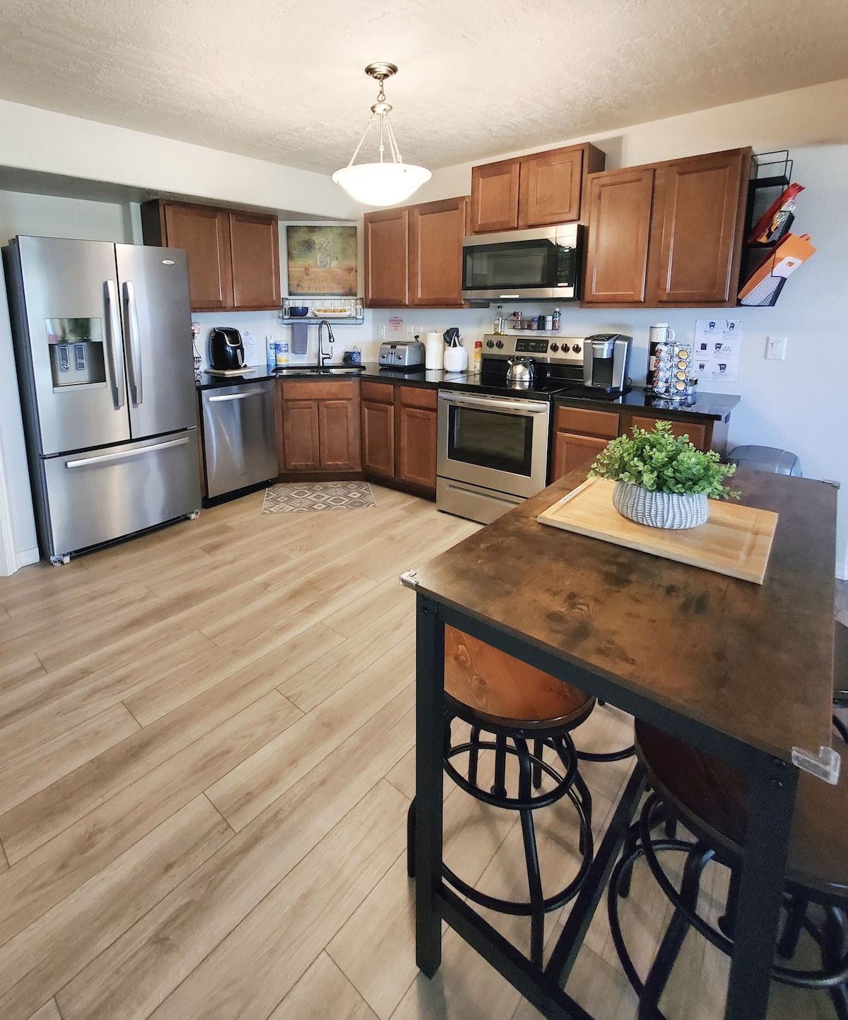 The Modern Farmhouse was recently remodeled with upscale amenities and everything you need for a comfortable stay! Enjoy your own delicious home cooked meals in the beautiful kitchen, gather in the dining room with seating for 8, enjoy a movie on Netflix or Disney+ on a huge 65" OLED 4K TV and 7.2 Klipsch Surround Sound with a large sectional providing seating for the whole family. Outside on the back patio you will find outdoor seating with a fire pit, a hot tub for 5, and a 6 burner BBQ.