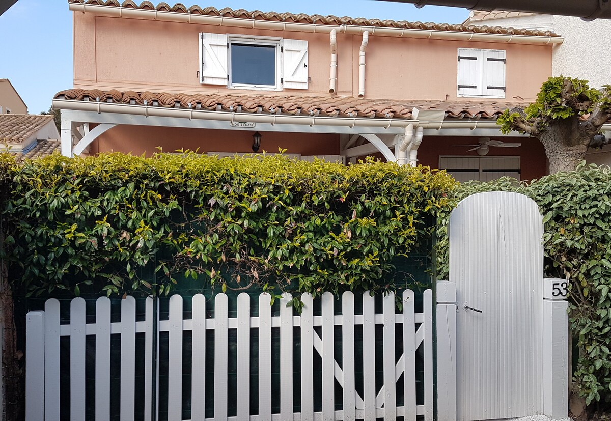 Невеликий будинок площею 70 м2 у тихому районі з квітковою терасою площею 40 м2, 50 м від пляжу та набережної. Магазини знаходяться за 300 м ВІД аеропорту. Можливість припаркувати автомобіль у саду . 3 спальні нагорі. Приватна резиденція з 8 будинків, огороджена автоматичними воротами. Ідеально підходить для сім 'ї і пенсіонерів і для зворотного сезону . Ле-Грау-д 'Агде - колишнє, жваве рибальське селище цілий рік. Піщаний пляж за 50 м простягається на 5 км до Кап-д' Агде. На відстані 7 км розташований Canal du midi.