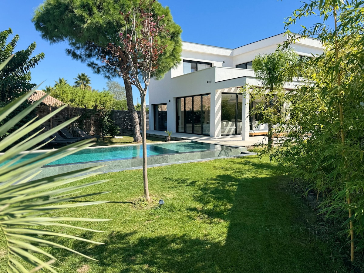 Розташована в 900 м від пляжу, чудова вілла 4* площею 220м ² з одним поверхом, повністю обладнана кондиціонером для 12 осіб. Вона складається з 6 спалень, включаючи головний люкс / 1 ванну кімнату та 3 SDE /повністю обладнану кухню з центральним островом... Усе це з видом на ділянку площею 1000 м² з приватним басейном з підігрівом та спа-зоною, що виходить на південь. Безпечна вілла з електричними воротами та сигналізацією - місткість: максимум 12 осіб для дорослих, включно з дітьми - Варіант прибирання: 370 €