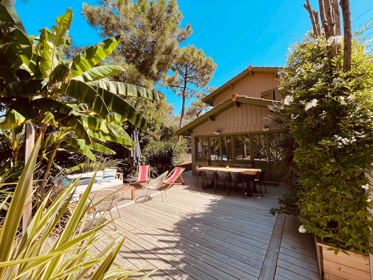 У типовій атмосфері Ferret-Capian: Ласкаво просимо до цього чарівного дерев 'яного будинку, який ідеально підходить для спокійного відпочинку для сімей або груп друзів. Розташоване в декількох хвилинах ходьби від пляжу Горизонт, це ідеальне місце, щоб покласти валізи: любителів серфінгу, ви знайшли рідкісну знахідку!