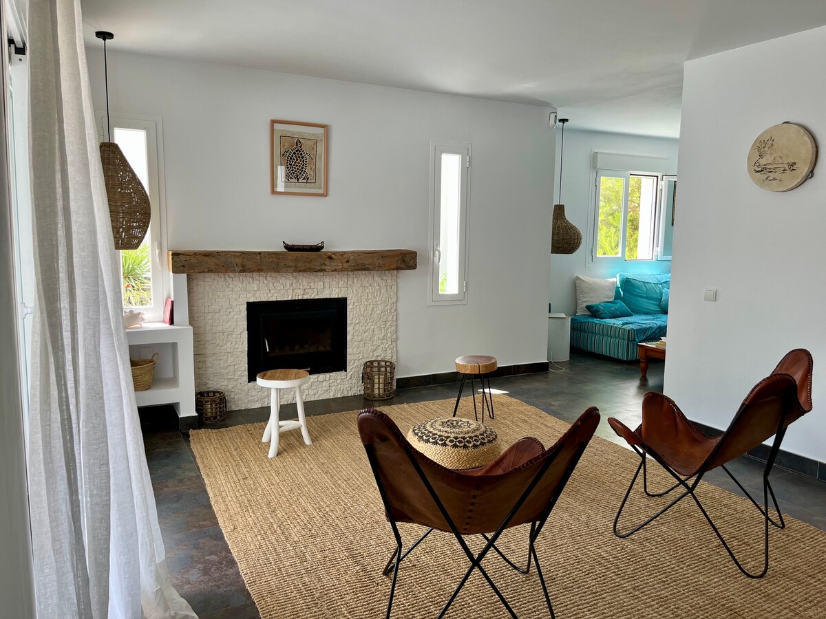 Гарний заміський будинок, розташований у долині Бенімусса, поблизу найкращих пляжів: Кала-Таріда, Кала-Конта та Кала-Басса. Будинок відремонтовано, зберігаючи при цьому автентичний ібіцький стиль, і він має барвистий сад із газонами та квітами. Wi-Fi Starlink у всьому будинку та на прилеглій території Великий басейн із кухнею на відкритому повітрі та повністю обладнаним критим барбекю. Критий тренажерний зал із телевізором, повністю обладнаний усіма тренажерами в ідеальному стані. Кондиціонер у кожній кімнаті.