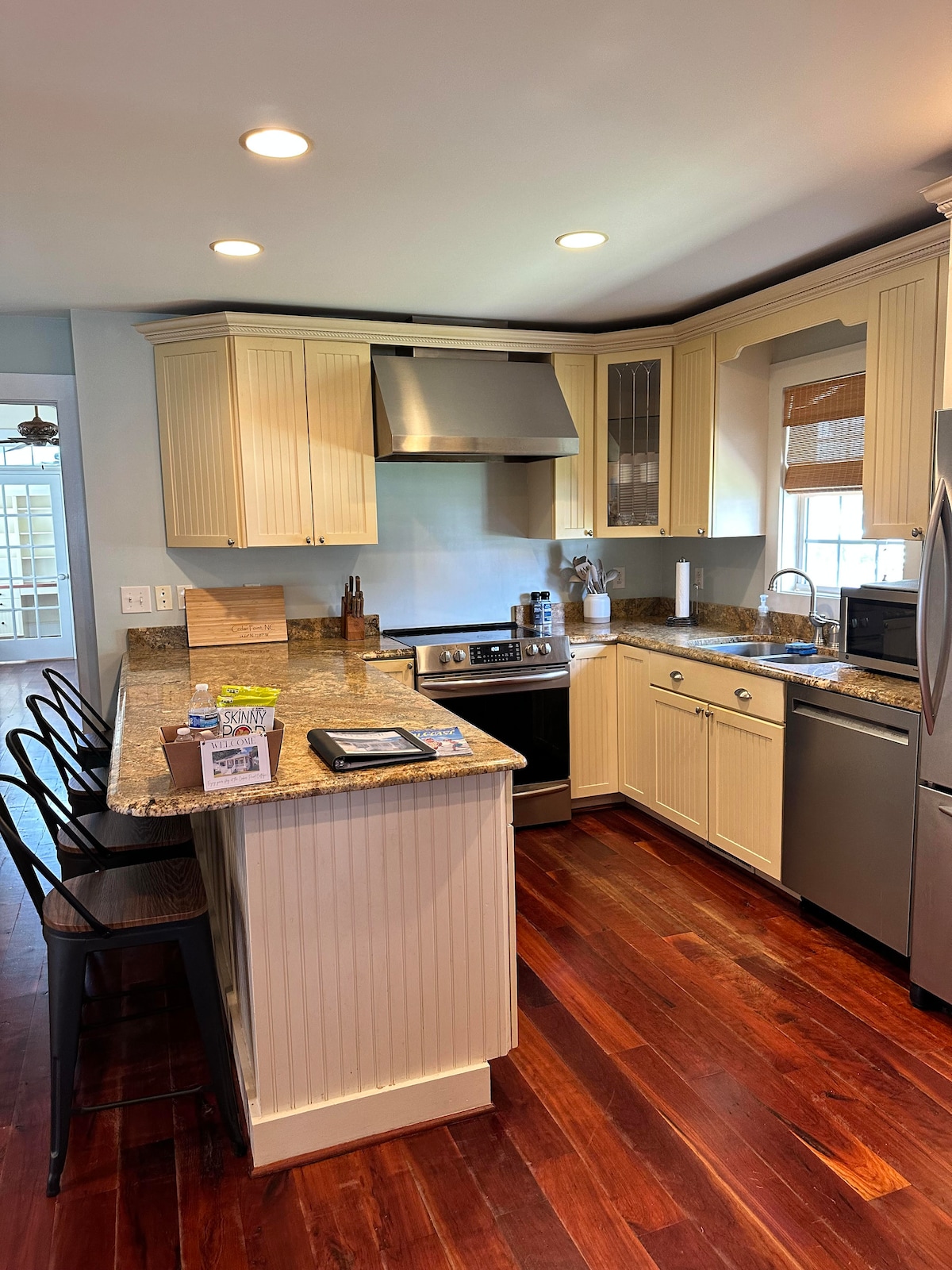 This coastal cottage located in beautiful Cape Carteret sits in a quaint waterfront neighborhood just a short distance to Emerald Isle beaches, local dining and entertainment. Bring your boat, jet skis, bikes or golf cart—there’s plenty of room in the driveway! All modern amenities are offered, including: -Paved parking -Porch with built-in furniture -Newly renovated kitchen stocked with cookware -Washer and Dryer -Dishwasher -Fast Wi-Fi -AppleTVs with YouTube TV