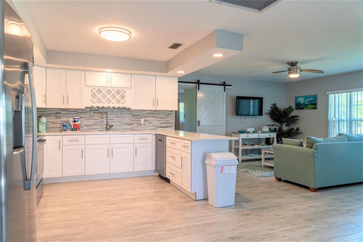 Цей просторий будинок із 4 спальнями та 3 ванними кімнатами був зі смаком спроектований для відпочинку та пригод, ідеально підходить для сімей, човників і відпочивальників. Візьміть із собою власний човен і скористайтеся нашим приватним причалом або досліджуйте воду за допомогою наданих каяків. Розслабтеся в басейні з підігрівом і гідромасажній ванні. Насолоджуйтеся дивовижними вуличними меблями та кухнею на відкритому повітрі. Насолоджуйтеся сучасним оздобленням, холодним кондиціонером, супершвидким Wi-Fi та повністю укомплектованою кухнею з усім необхідним. У кожній спальні є 65-дюймовий телевізор Samsung