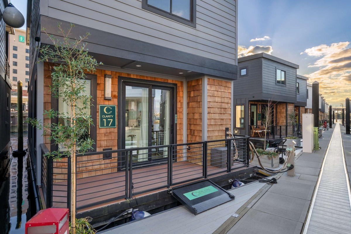 Залишайтеся на воді в унікальному висококласному двоповерховому плавучому будинку площею понад 1000 кв. футів. Розкіш на всьому шляху. У межах прогулянки до історичної Уїлмінгтона, концертної арені Live Oak, прогулянки річкою, ресторанів, музеїв та конференц-центру. Помешкання: 2 спальні з телевізорами , 2 ванні кімнати, 2 просторі вітальні зони, 1 з телевізором з великим екраном, повністю обладнана кухня, їдальня та 3 тераси з сидінням, їдальня на вулиці та бар. Постільна білизна, безкоштовна кава та туалетно-косметичні засоби включені, а також безкоштовна парковка.